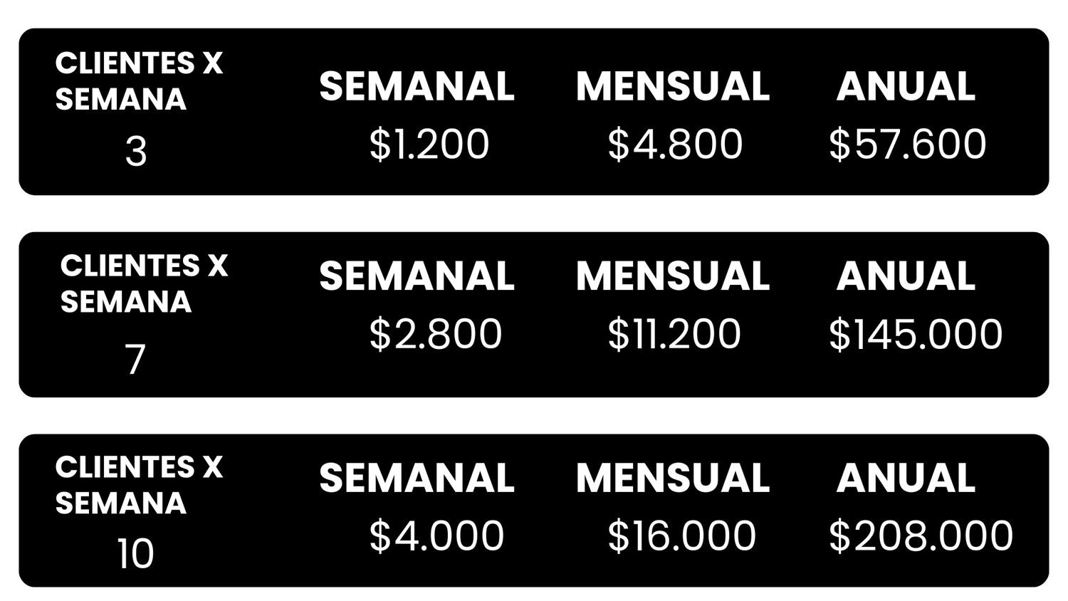 La demanda de estos procedimientos sigue en aumento, y puedes alcanzar un nivel de ingresos considerable. A continuación, te mostramos un ejemplo de cuánto podrías ganar al comenzar en esta industria.